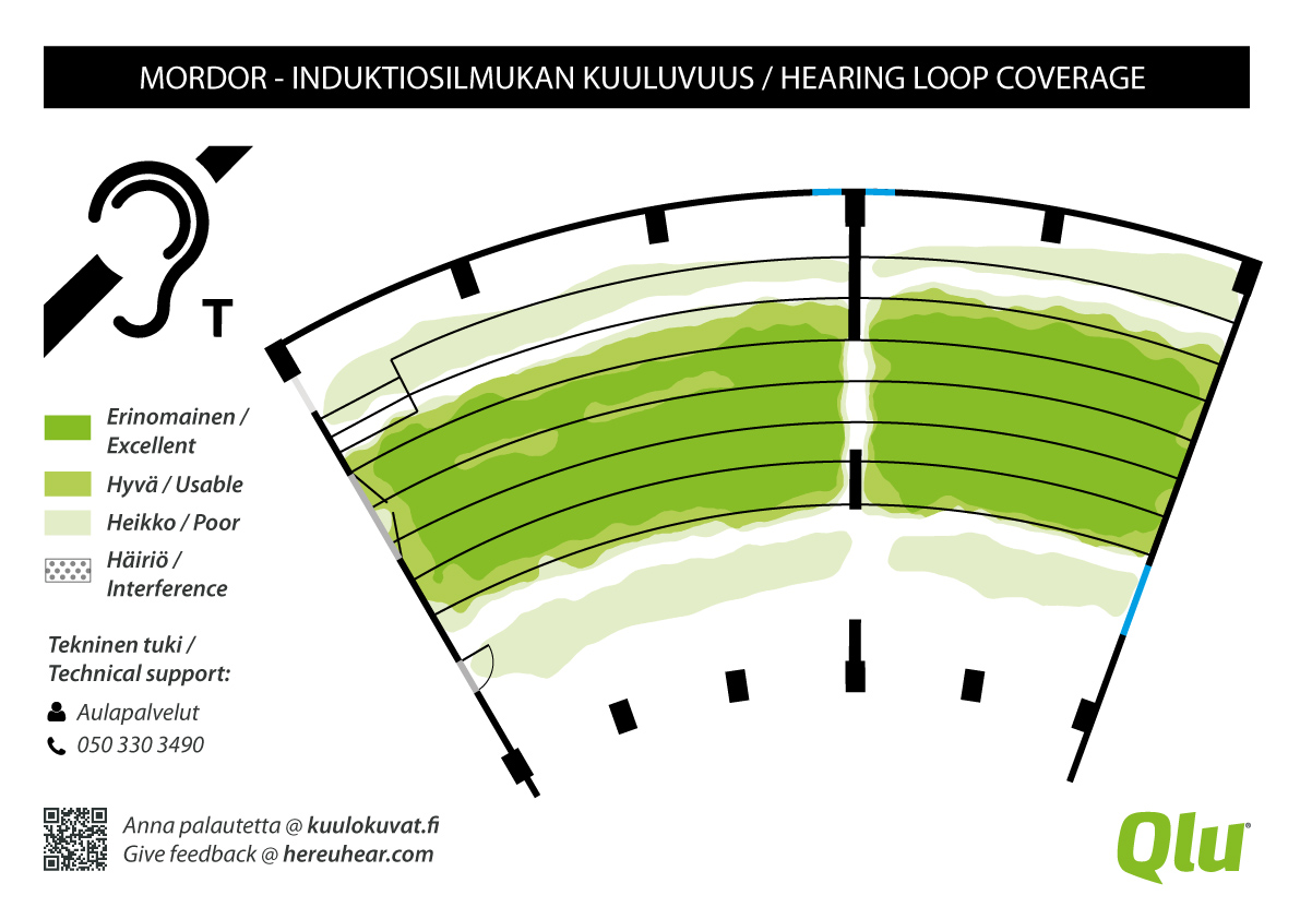 Mordorin uusi induktiosilmukkajärjestelmä on osa vuosina 2019-20 toteutettua projektia, jossa Qlu-kartoitettiin ja tarvittaessa korjattiin yli 50 luentosalin ja luokan induktiosilmukkajärjestelmät.
