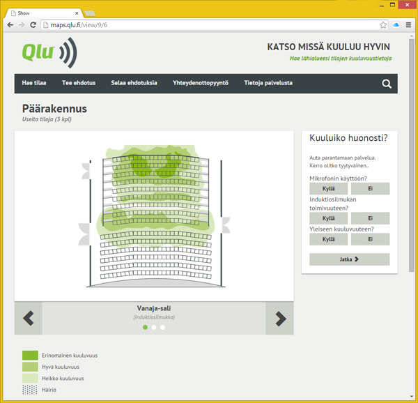 Lokalens hörbarhetskarta finns till påseende i tjänsten maps.qlu.fi på adressen http://maps.qlu.fi/view/9/6